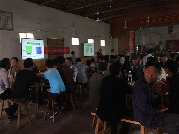 周經理給會場農戶講解水稻高產的困惑及解決方案